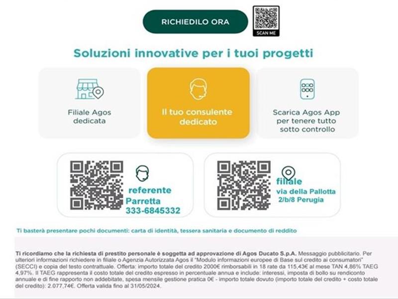 vi informiamo che abbiamo raggiunto un accordo con AGOS, primaria società finanziaria che concede prestiti di ogni tipologia.