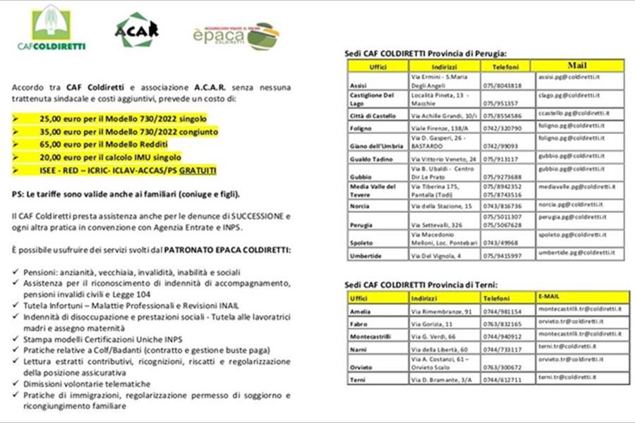 ACCORDO CON I CAF COLDIRETTI DELL'UMBRIA